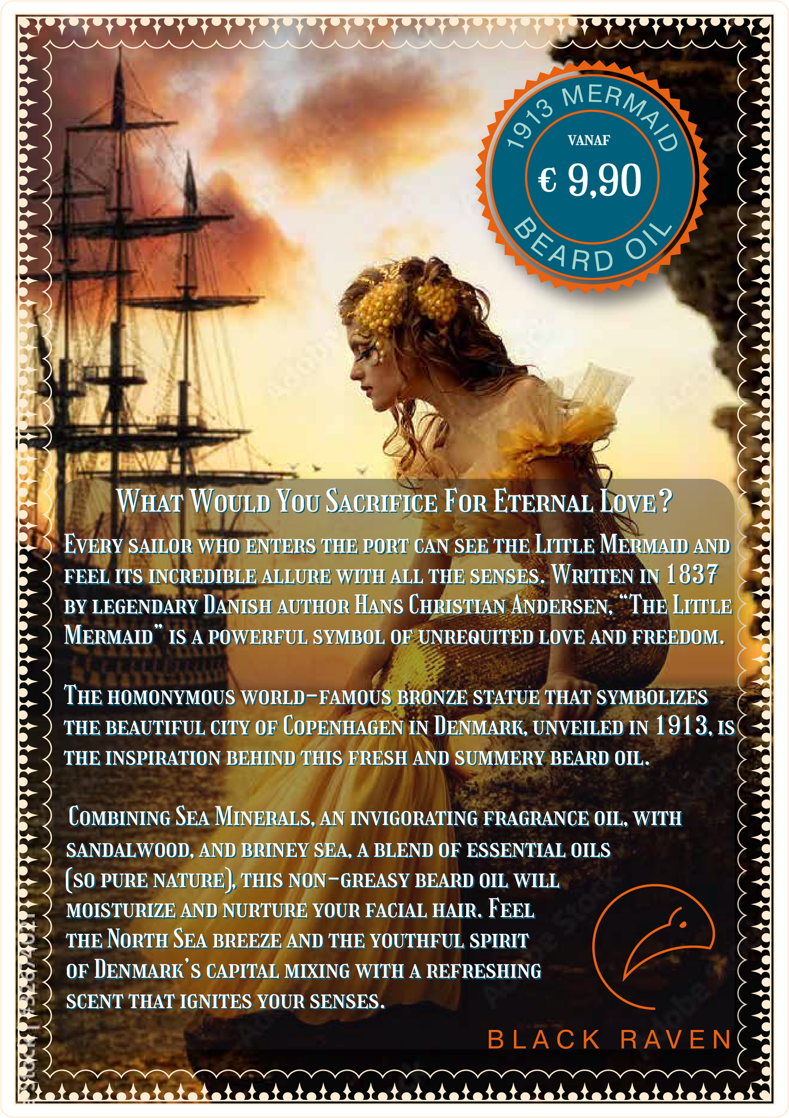 Het gelijknamige wereldberoemde bronzen beeld dat de prachtige stad Kopenhagen in Denemarken symboliseert, onthuld in 1913, is de inspiratie achter deze frisse en zomerse baardolie.